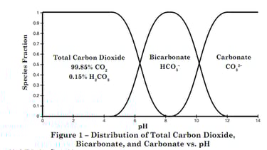 Pri pH 0–8 sa uhlík vyskytuje vo forme CO2, pri pH 4,8–5 sa objavuje hydrogénuhličitan (HCO3–), ktorý pretrváva do pH 12. Uhličitan (CO3–) sa vyskytuje pri pH nad 8,5.