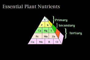 Makro- a mezoelementy: N, P, K, Ca, Mg, S. Rastliny ich potrebujú vo väčšom množstve, tvoria niekoľko percent zo sušiny rastliny.